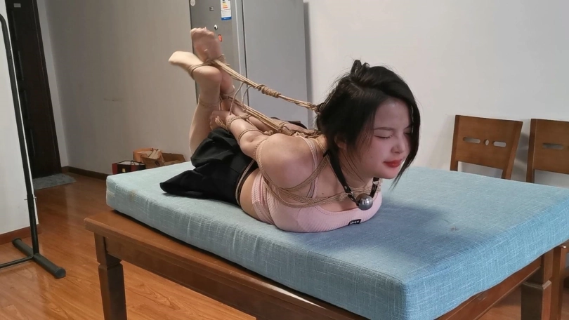 颜值高、身材火辣的妹子灿灿,绳子一上身更显的身材凹凸有致,更加上一副童颜[不可描述],绑起来更显得楚楚可怜,这种微胖的妹子可以说是绳艺界的天花板身材了,有一点肉吃绳子更有紧缚的味道。这次依旧是直臂驷马放置,还用绳子拉头发让头昂起来,但是她的手臂由于绳子把肉都勒起来了,绳师绑的又很紧,很快就麻的她受不了了,但是房间里又没人,她一开始只是哼哼唧唧的,很快就直接崩溃到嚎啕大哭喊救命了,甚至还不顾头发的束缚疯狂摇头,对她来说这一定是一次难忘的经历。