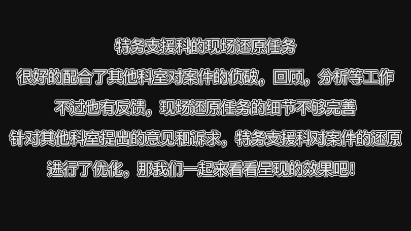 特务支援科对案件的还原进行了优化,那我们一起来看看呈现的效果吧!