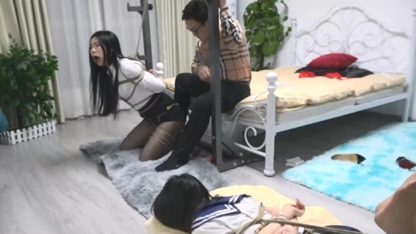 (捆绑穆轻语,穆轻语绑法如下图,苏雨晴绑成驷马)