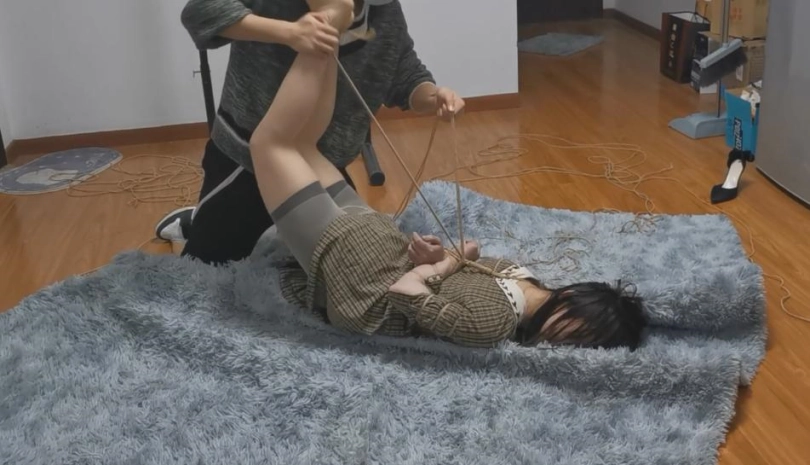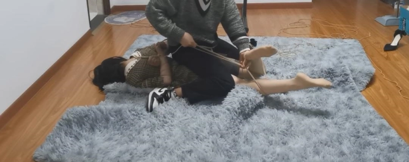 心得体会:绑住一个疯狂挣扎妹子的双脚,真的很难。大家可以试试~~~~