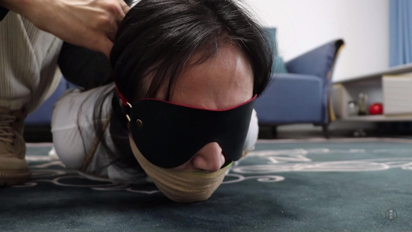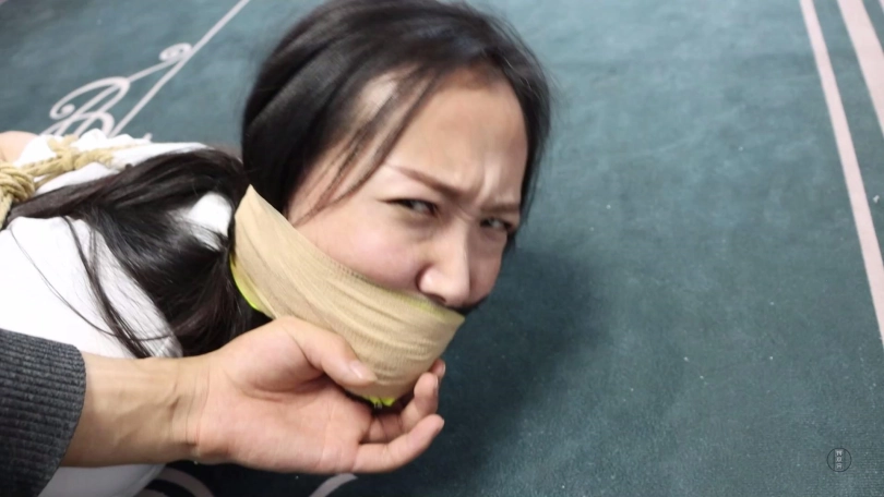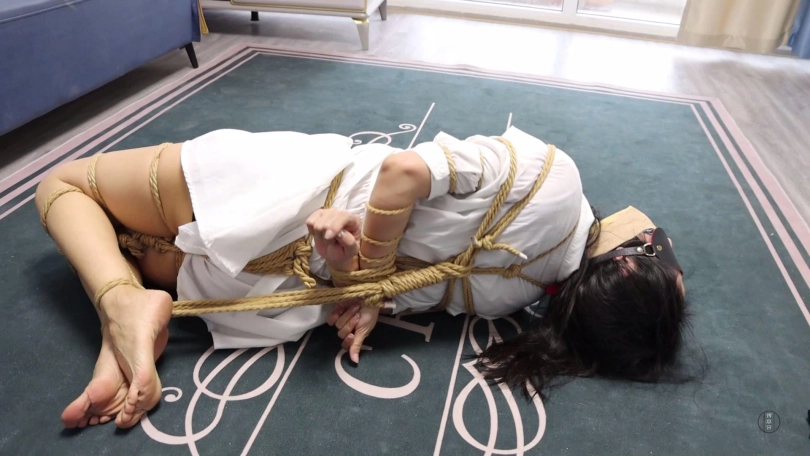 文清扭动身体在地上来回呜呜呜闷哼挣扎,可这次不管怎么挣扎绳索纹丝未动,始终无济于事,最终精疲力尽的她减小挣扎幅度,低下头躺平等待家人回来解放她。