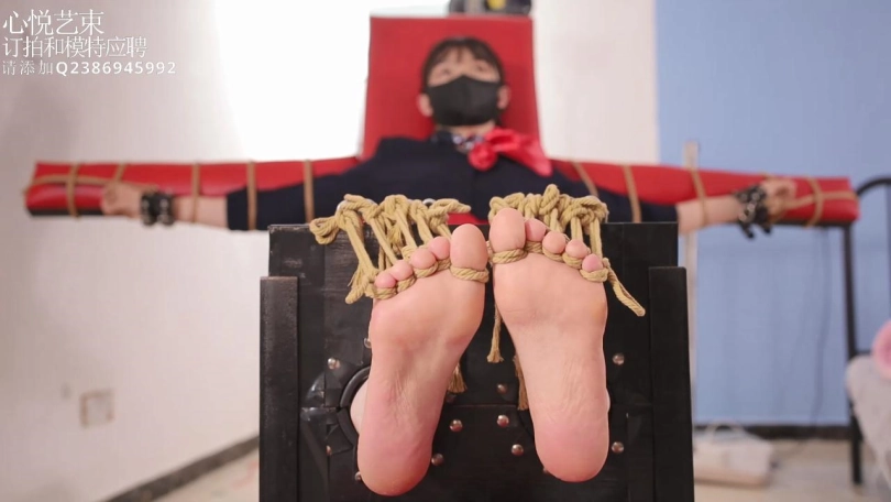 【心悦艺束】超性感的长腿裸足空姐被拘束在老虎凳上绑住十根脚趾戴上脚趾铐多种道具TK挠脚心