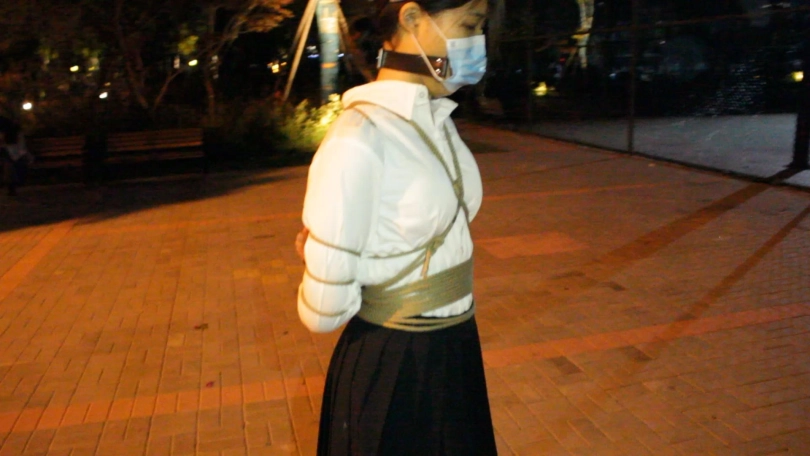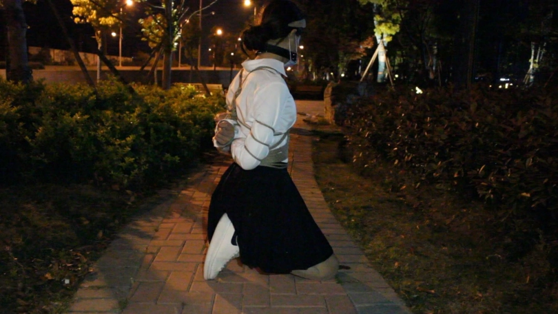 【子衿】菲菲五花户外行走罚跪,带上口枷,忍不住的口水模流