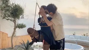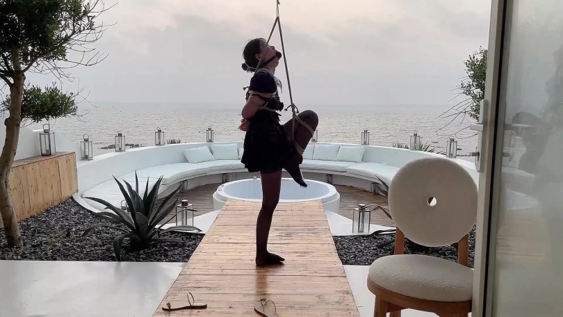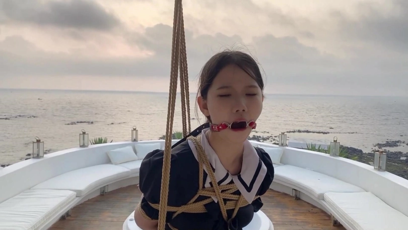 吹着海风,看着日出,佳佳感受不一样场景的kb刺激,扣球最大号,口水兜不住。身后的小船也许看见了,在佳佳背后游来游去。