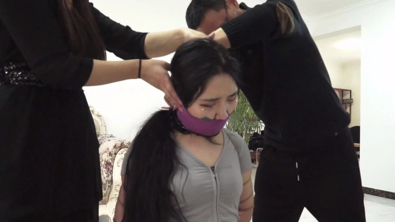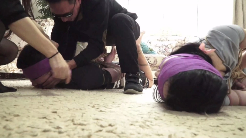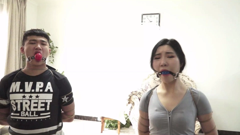 两个劫匪将情侣二人重新五花大绑严厉捆绑结实,给他们带上塞口球,欣赏他们挣扎的样子,原来李然和锁哥有东西忘在吴晗家,回来正好将挣脱的情侣二人重新捆结实。