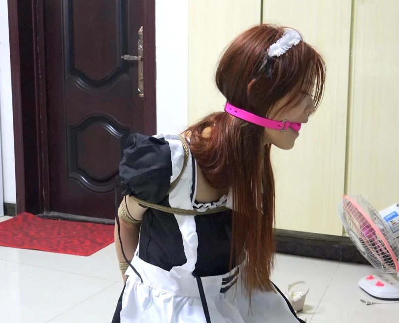 【子衿】菲菲上班迟到被无良老板惩罚,想上厕所却动不了-紧缚驷马捆绑挣扎口水收集,最后带着镣铐做卫生