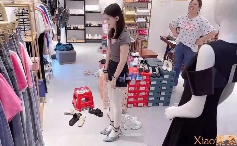 户外部分更是大胆精彩,可爱的小女奴戴着各种道具、镣铐走在熙来人往的街道,走进超市、小吃店,