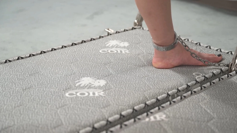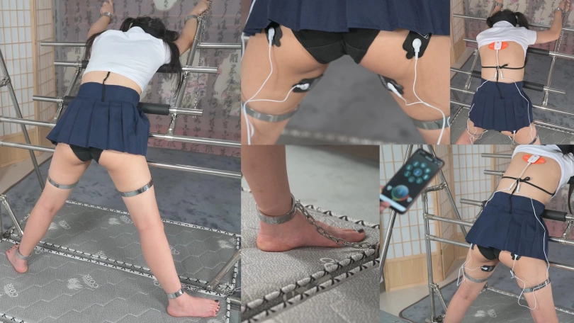 汤圆同学总是能带来极限感受,这次用铁架镣铐固定,还特意加了大腿铐,固定放置的时候她还挺放松,好像还哼起了小曲儿。那么绳师就不客气了,给她加上遥控电击器,悄悄地并试探性地把电力开到最大,眼看着屁股附近的肌肉大幅震颤,她却没有表示受不了,看来前一阶段的电击调教训练还是有效果滴。