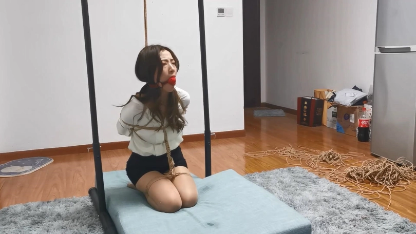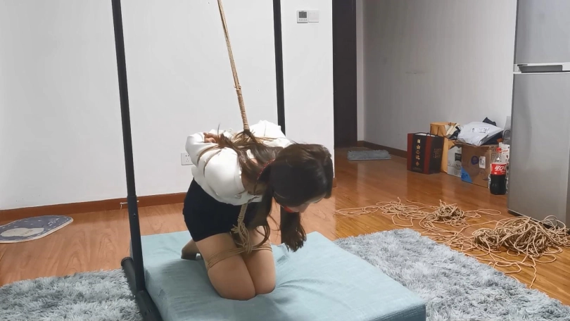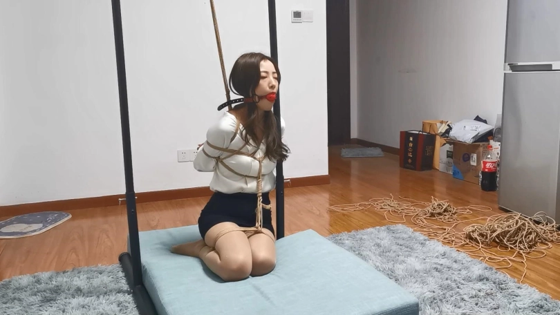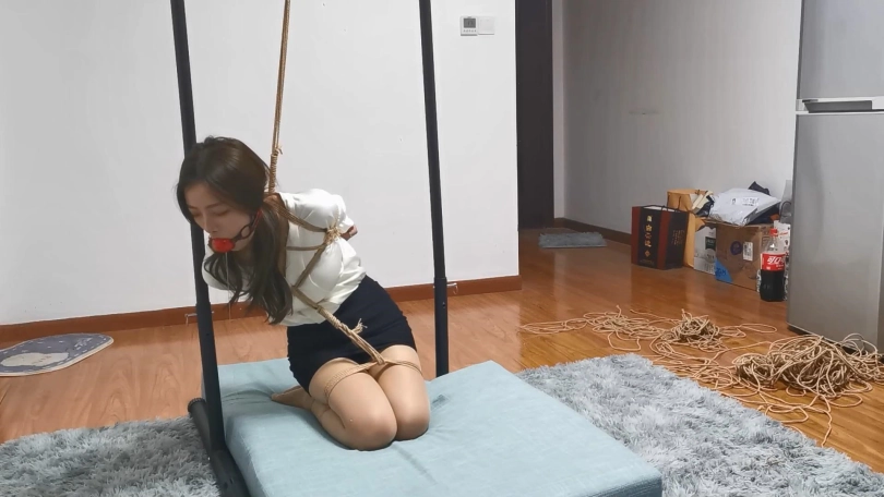 丰满美女兔兔,兔兔身穿职业装被绳师紧缚跪在吊架下,背后有绳子往[X_X],胸前有绳子连接牵制起身,被绑的只能左右摇晃毫无挣扎的余地,然后再给小美女带上大号口球,而兔兔又是个口水很多的妹子,在一个多小时的放置过程中只能眼睁睁的看着口水流的到处都是了。