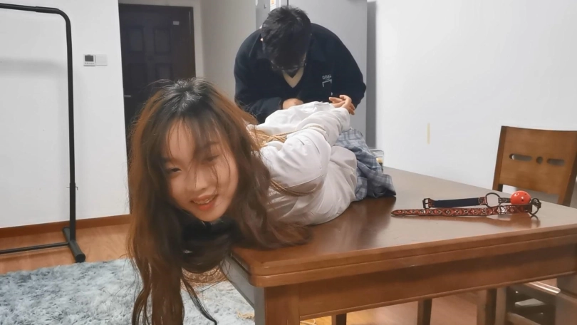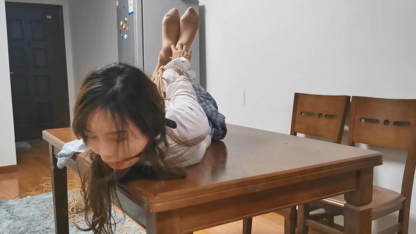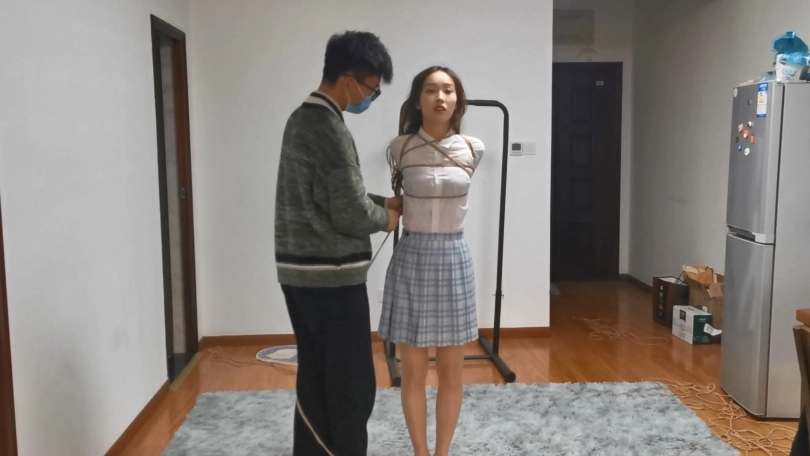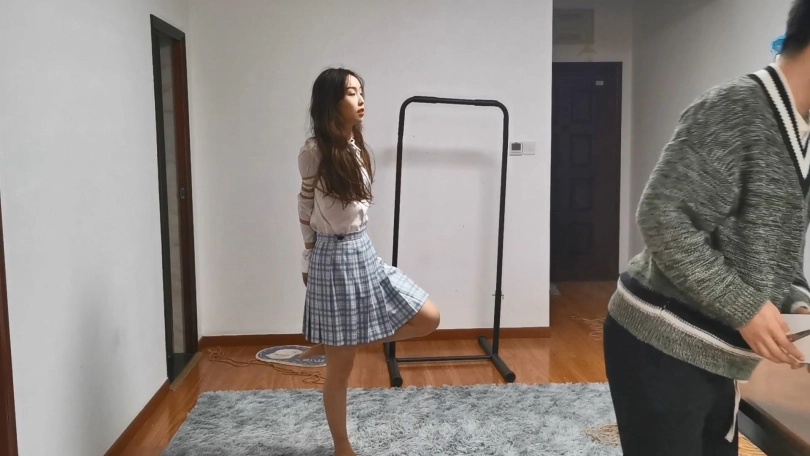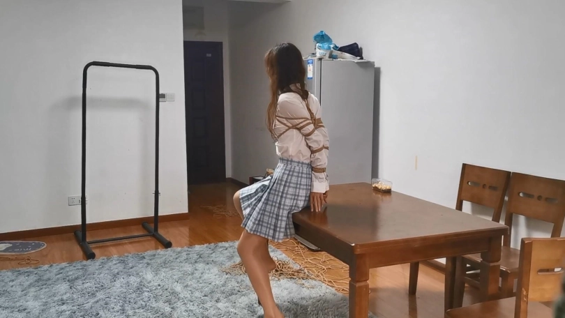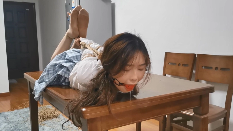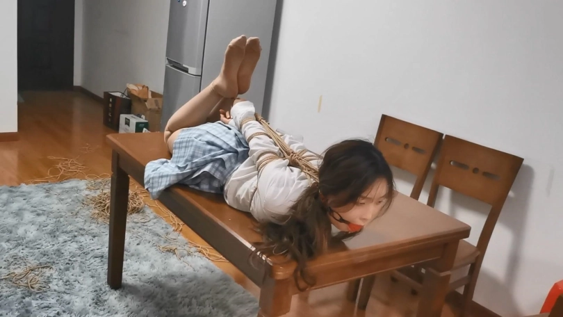 舞蹈生美女雨琪,穿上JK制服很有学生气质,对于她这次依旧是严厉的直臂驷马紧缚超长时间放置。前几次定拍都让她把口球吐出来了,这次特别用绳子穿过口球皮带向后拉紧,雨琪尝试了一个半小时都没吐出来,口水滴滴答答流了一地。这次绑的很紧,她几次想翻身都很困难,最后手脚都给捆麻了。