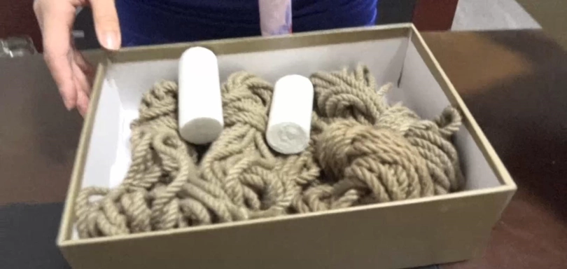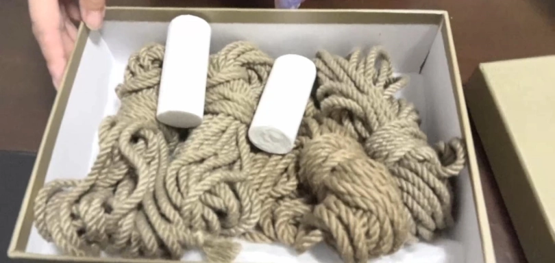 柳洋是一家公司女秘书,这天刚来到办公室,发现办公桌上有着一个自己的快递。开心的将包裹打开,但是里面的东西让自己大吃一惊,原来里面的东西居然是几捆绳子,还有两款纱布。正疑惑是谁寄过来的时候,老板这时来到了身后说:“看来又买了新绳子了呀,来让我为你试试这新绳子怎么样。”接着将柳洋双手扭到背后,让她趴在桌子上,用着绳索将她的双手捆绑起来。柳洋挣扎着说:“哎呀!你干嘛我也不知道这是谁寄过来的,还要工作了!”(工作?什么工作虽然不知道是谁寄过来的,但是寄过来了不得捆起来玩一下怎么行。)老板:“什么工作,今天给你放假了!”随后将柳洋捆绑起来,将丝袜慢慢塞入嘴中,用纱布将双眼以及嘴巴蒙了起来~