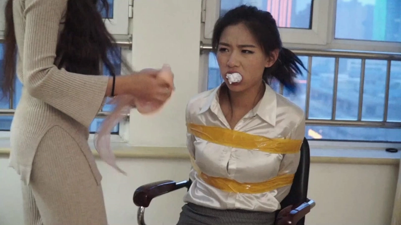 邢嘉妮与罗薇薇是同一家公司的同事,但是罗薇薇脾气不好总和邢嘉妮对立吵嘴,于是邢嘉妮找到一个机会逮住罗薇薇将其用黄胶带捆绑后押到自己家进行折磨。