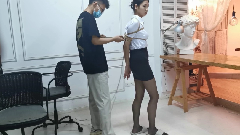 小松是雨琪的同学,同为舞蹈生,身材和颜值都是顶级的,柔韧性更是好的夸张,绑极限欧式驷马感觉很轻松,这次的束缚也很严厉,极限欧式驷马的状态下为了防止出现挣脱口球的情况用脚上的绳子连接口球的皮带,挣扎的时候口球会拉紧。这种情况下小松居然挣脱了腿上的束缚,不过代价就是小松注意力都在努力挣脱束缚上面,口水一直流没停过,拍摄临近尾声的时候的口水都聚集了一大滩,灯光下各种反光,非常有意思。觉得小松完全还有余力,后面会加大难度。