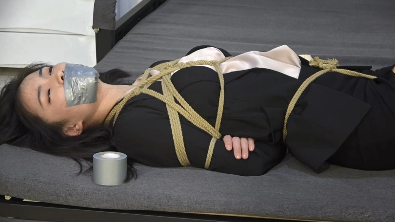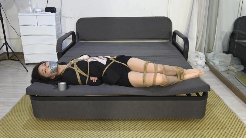 富豪很生气,于是来到小胡家的地下车库内,在小胡准备上楼时,强行将小胡塞进了车内,并用胶带将小胡的手脚粘住,驾车离开(拍摄一小段小胡被绑后挣扎的片段)