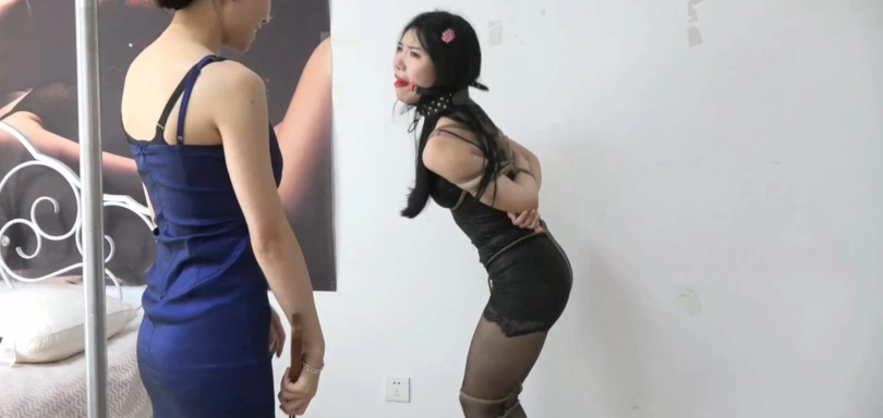 刘小萌在将自己师姐折磨了一阵之后,为她解开腿上的绳索,让她站了起来,顺手拿来了为自己师姐精心准备的皮鞭。狠狠的抽在了夭玲的臀部上,疼的她不得不一蹦一跳的躲避刘小萌的皮鞭。这不看到自己师姐一蹦一跳的可爱样子,刘小萌更来了兴致,笑着说:“师姐你这一蹦一跳的样子就像一只可爱的小白兔,我忘了给你准备一只兔耳朵了,要是在戴上一只兔耳朵啊,就更可爱了,对了,我还给你准备了一套衣服,我给你拿去。”记得第一部的时候,刘小萌也是穿着这套衣服以同样的方式被捆绑起来,遭到自己师姐的折磨。所以刘小萌决定以其人之道还治其人之身,也将自己师姐这样捆绑起来。(至于那段脱丝袜擦嘴的片段原版是吴晗戴着口环的,不过听工作室说好像是牙龈肿了,无法按照原定计划来,所以才换上了胶布)接下来自然是再次折腾自己的师姐了~不停的用着自己的黑丝美脚蹭着夭玲的脸庞,用着皮鞭抽打着自己的师姐。双手不停的游走在夭玲身上的每个角落,一边挠着夭玲的腋下,一边发出满意的笑声(柳洋姐姐可太坏了)而我们的师姐被紧紧捆绑起来,无法躲避刘小萌的双手,只能任由自己的师妹不停的折腾自己~