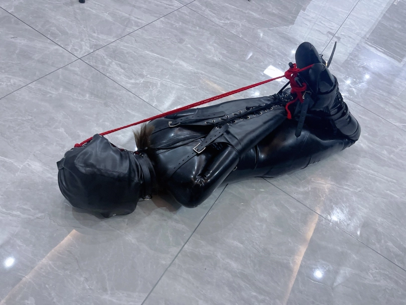 1.此时的茶茶已经被拘束成一个乳胶肉块、动弹不得,别说站起来了,连挣扎都别想。给茶茶设立解脱条件:旋转180度掉头成功或自己解开拘束,失败则惩罚。