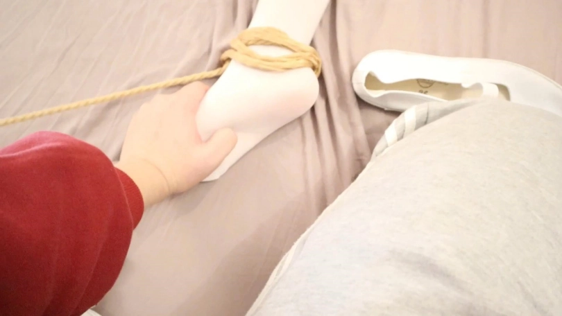 换了个姿势绑好 摸着两边的白丝脚欺负并且问 你选一边吧 左边还是右边