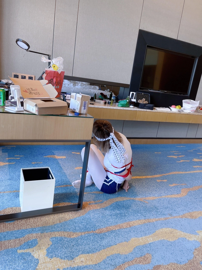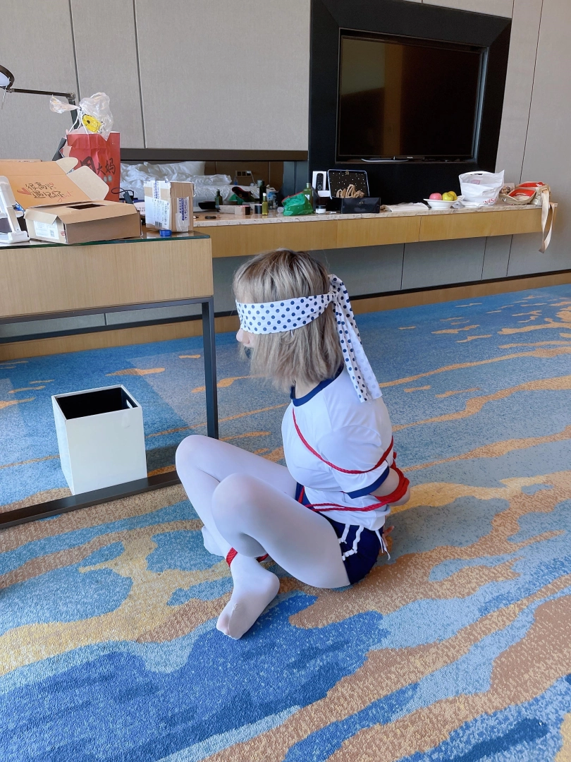 拘束方式:海老缚(盘腿缚),拘束强度为普通(大概普通人捆绑的松紧度)