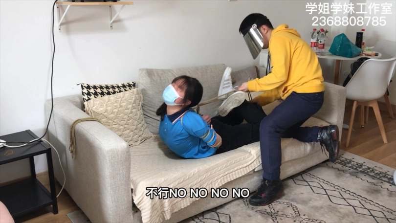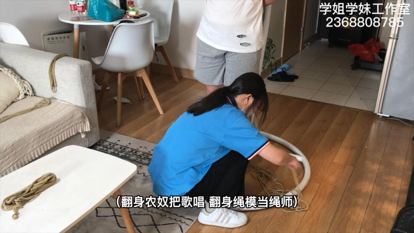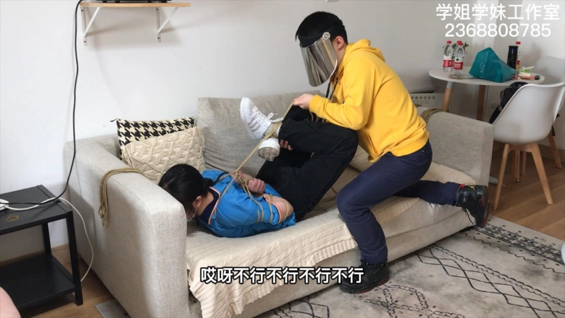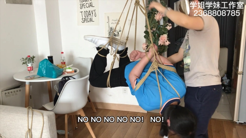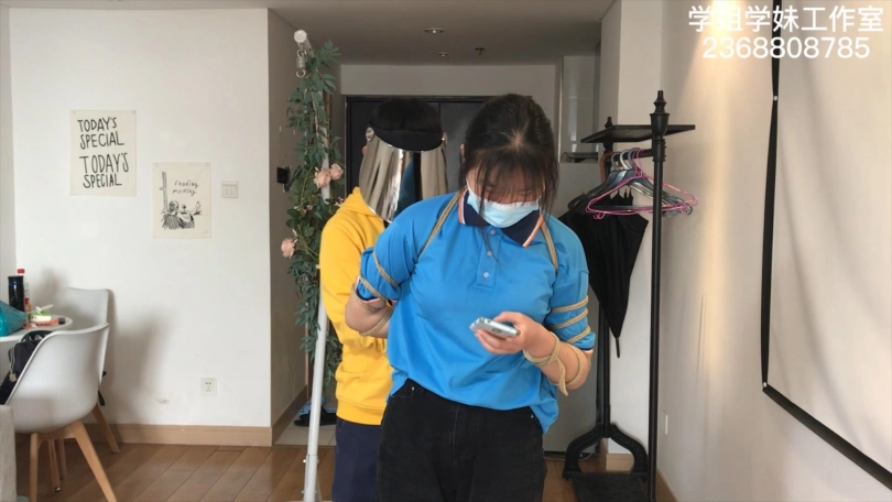 么么的学校在搞封闭管理,只有周末才可以来做兼职绳艺模特。这一次周五放学后,么么连校服都没来得及换,就直接来工作室拍摄了。先是穿着校服牛仔裤和白色阿迪贝壳头板鞋来一组五花驷马押解和日式悬吊,再换上我准备的旗袍黑丝高跟鞋来一组五花驷马和半吊。小女生没穿过旗袍和丝袜,担心走光的么么每换一个动作都在尖叫。这么青涩的模特一定不能放过,必须脱掉她的高跟鞋,狠狠的来一组TK。这一次拍摄么么还带来了一个晚上要跟她约饭的小姐妹,那当然不能放过宣传绳艺的好机会,三下五除二给一块绑了。