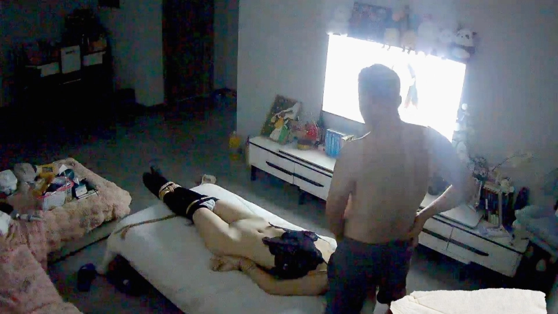 晚上本来是主奴的情趣时间,把m捆绑在客厅茶几上,放上玩具,准备开工的时候临时接到个电话,忘记关门,匆忙出门了,回来看监控才知道发生了啥,一个壮汉偷偷潜入,m不知所措,但是已经来不及了,没有任何反抗的余地,[X_X]的狂吸,按住头部强制口舌,茶几上的无情后入,她除了害怕,听从,呻吟,什么都不好做,害怕极了!然而正常监控确记录下了这一切。
