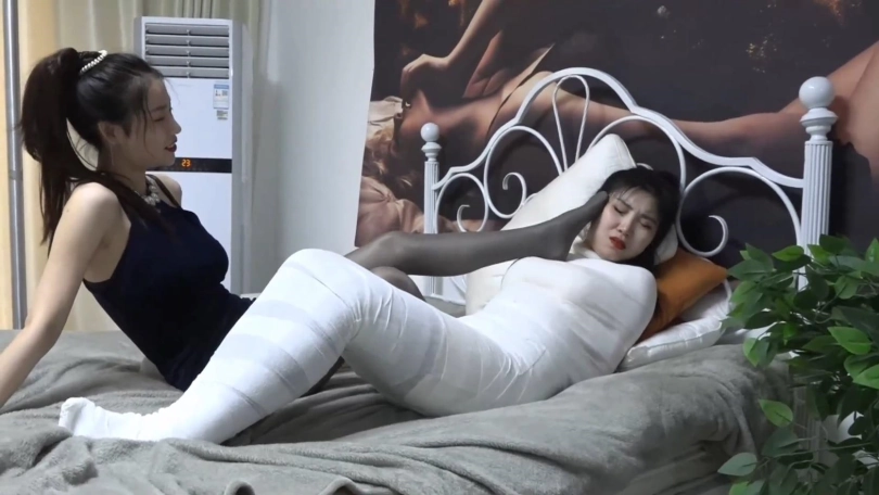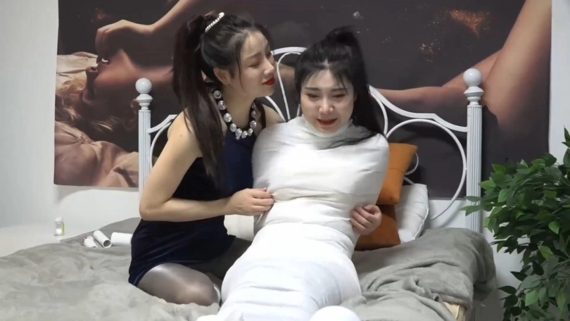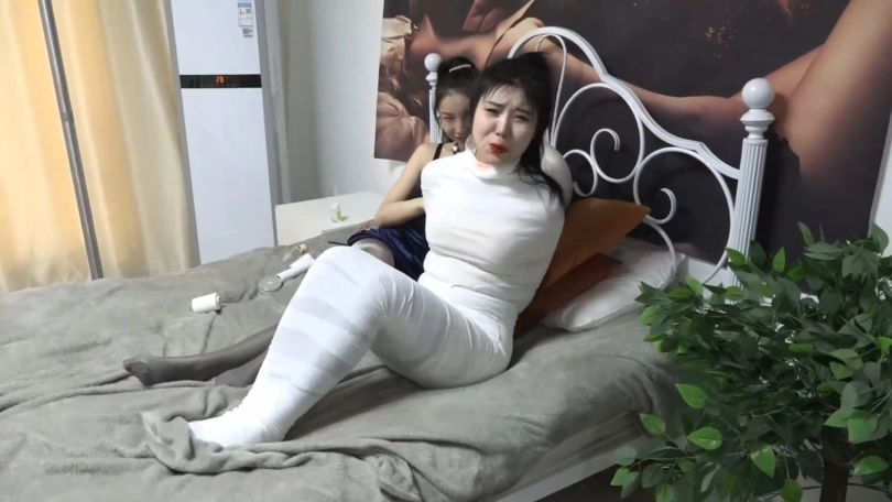 【逍遥】吴晗+柳洋《木乃伊女宠02》明星被包裹成人茧 被化妆喂食 被迫捆绑直播 丝袜美足肆意玩弄