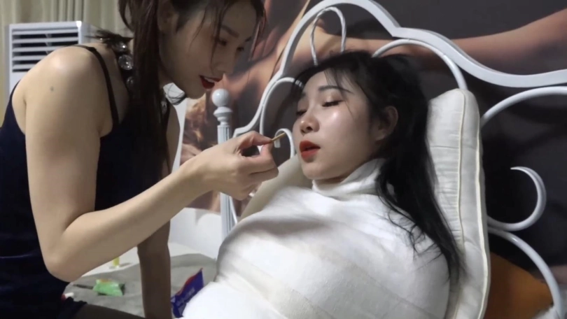 完全被包裹成人茧的吴晗被女王柳洋肆意玩弄,像小婴儿一样被喂食调教,甚至被化妆完强迫直播,被油光丝袜肆意磨蹭玩弄~2个模特都是演技超强,非常入戏,剧情向~