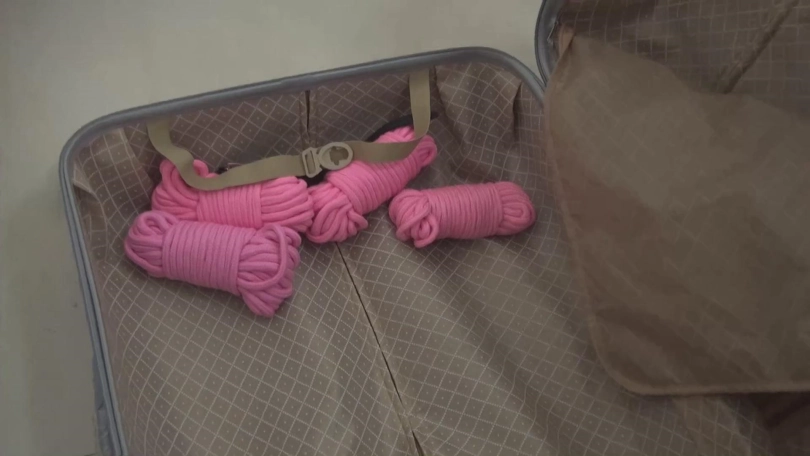 拎着大号行李箱的远方来客:一个小伙子拎着大号行李箱进入旅店房间,他拿出电话要了“特殊服务”,不久,一个羞涩的姑娘敲开了房门,小伙子提出要和姑娘玩个游戏增加情趣,他从行李箱中拿出几捆棉绳,把姑娘紧紧捆了起来。。。。。