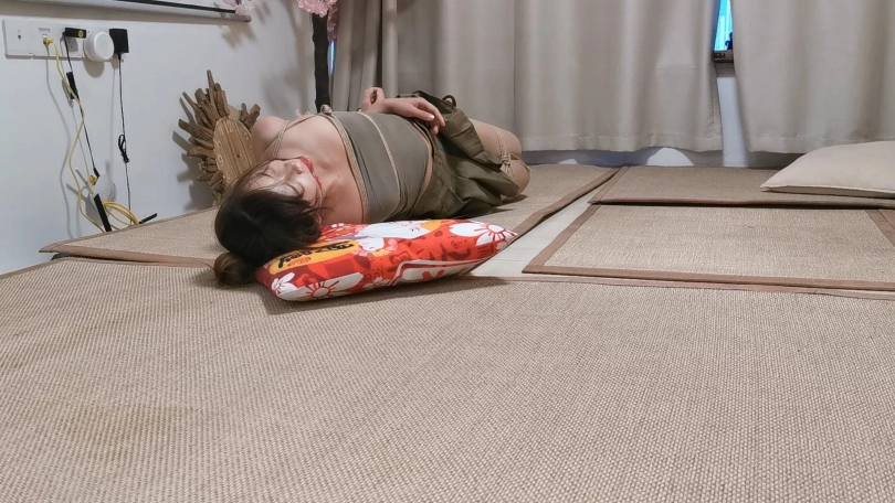 【绳师奥特曼】小荣绳艺初体验 小吊带直臂驷马口球放置在小茶几上