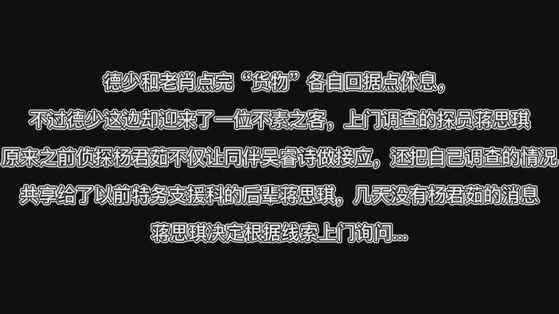 原来之前侦探杨君茹不仅让同伴吴睿诗做接应,还把自己调查的情况