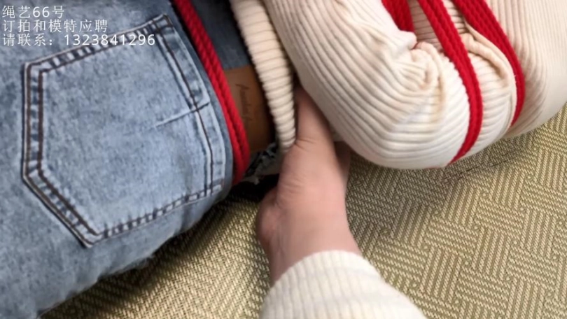 【绳艺66号】3号姬肉丝红绳驷马+拇指铐脚趾铐双重锁定+粉色大口球堵嘴。绝望挣扎。