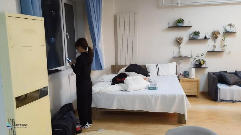 女孩在天台散步,被男人袭击弄晕。将其捆绑堵嘴,放置在天台。