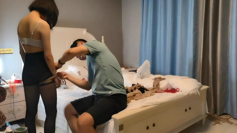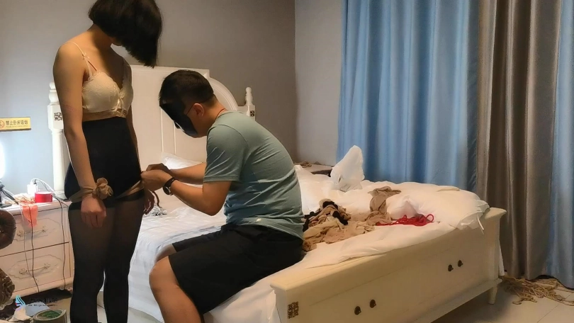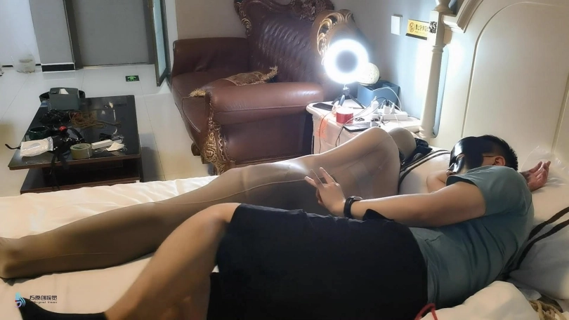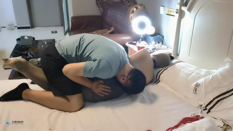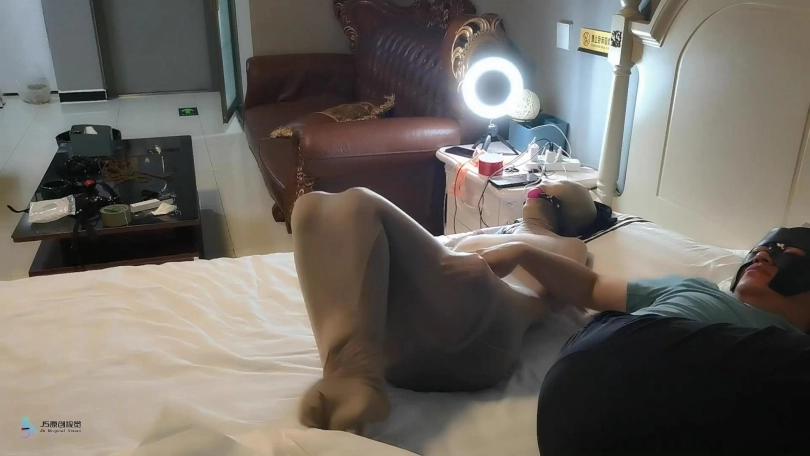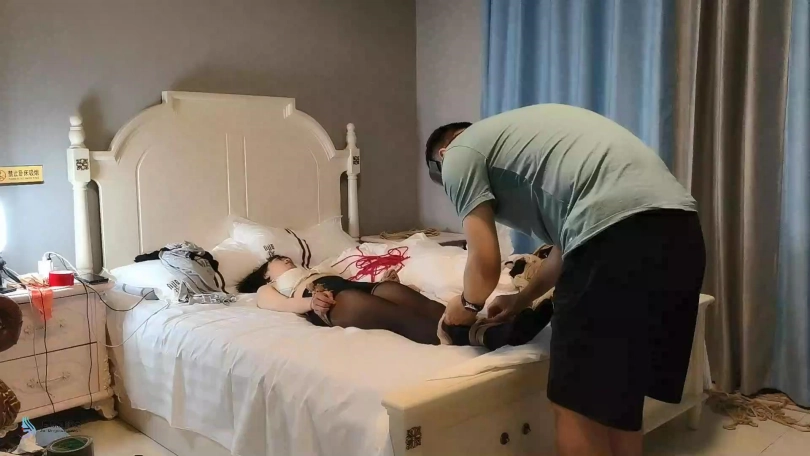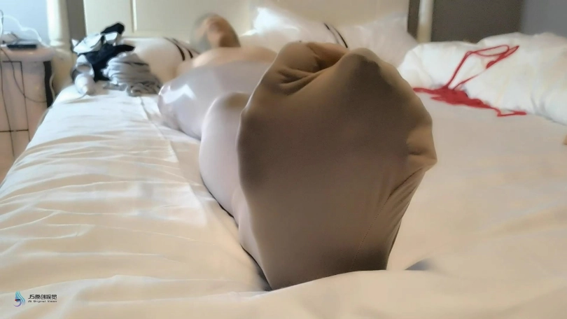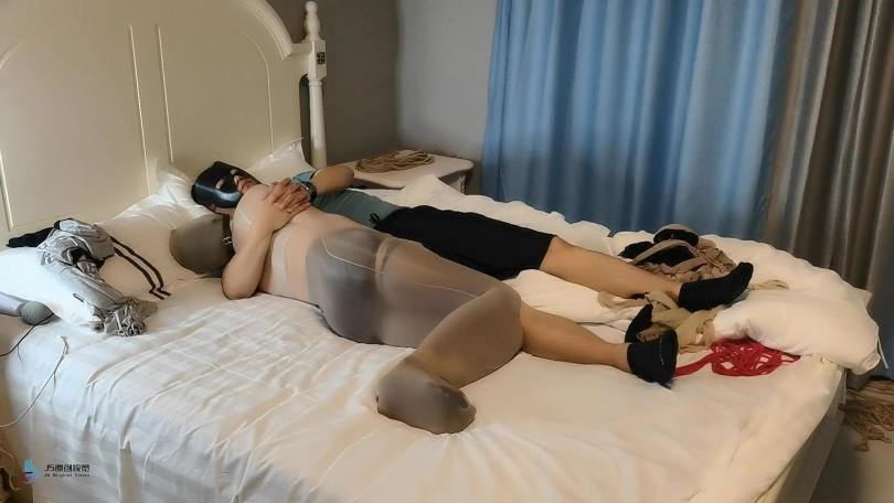 “激辣”穿着内衣和丝袜。用丝袜把她捆绑起来,再用一双超大丝袜袋将她包裹在里面。嘴里塞进一只超大口球。捧起她的脚玩弄,挠痒。用棒棒刺激她下面,她不断地发出呻吟声音。。。