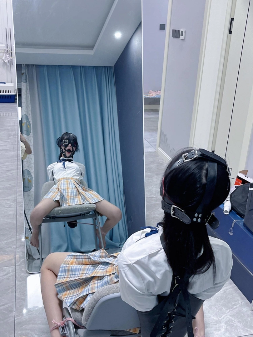 【咕咕精】清纯jk茶茶椅子对镜放置、强制抚摸(鼻钩、马具口球、单手套、肆意抚摸,羞耻拉满~)