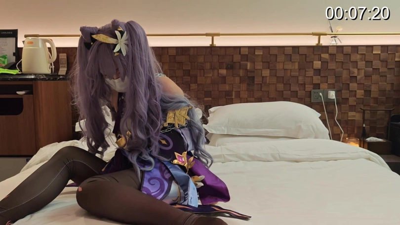 璃月玉衡星刻晴结束了一天的工作下班后被旅行者迷晕过去并用锁链捆绑了起来,刻晴不断挣扎威胁履刑者不放开她就让她好看,最终力竭躺在床上等待旅行者的宰割
