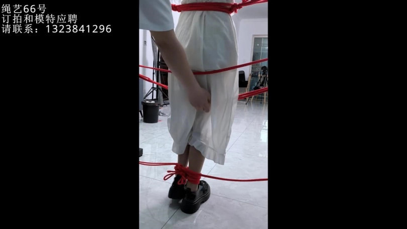 肉丝小仙女,门框内的人柱,吊缚双手,全身固定,没有任何一处关节可以移动。剩下的就是疯狂的TK了哈哈。