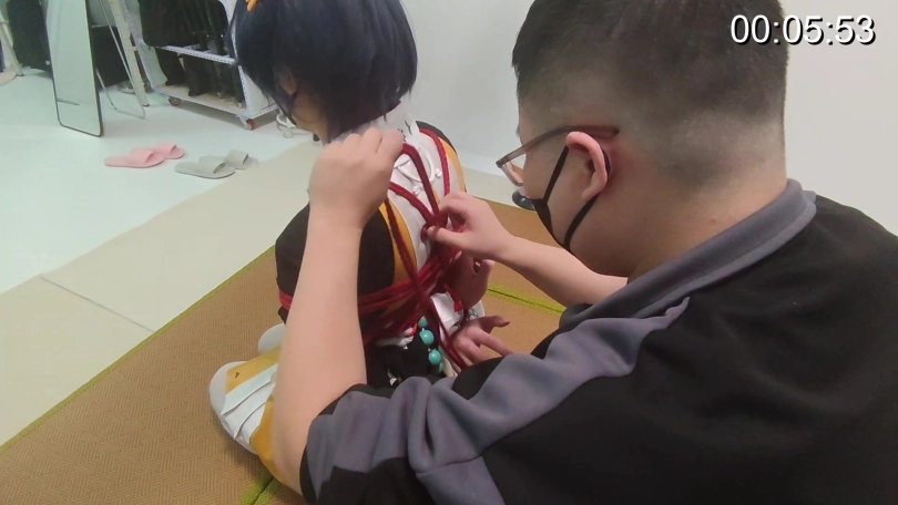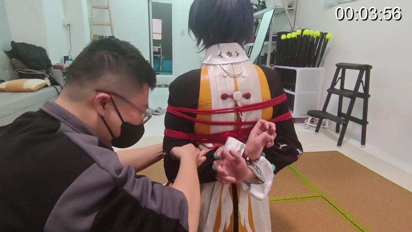 记录下后手缚捆绑过程。最后才捆绑手腕的方法确实有助于快速松解手腕缓解酸麻并重新绑回继续拍摄,很好用。