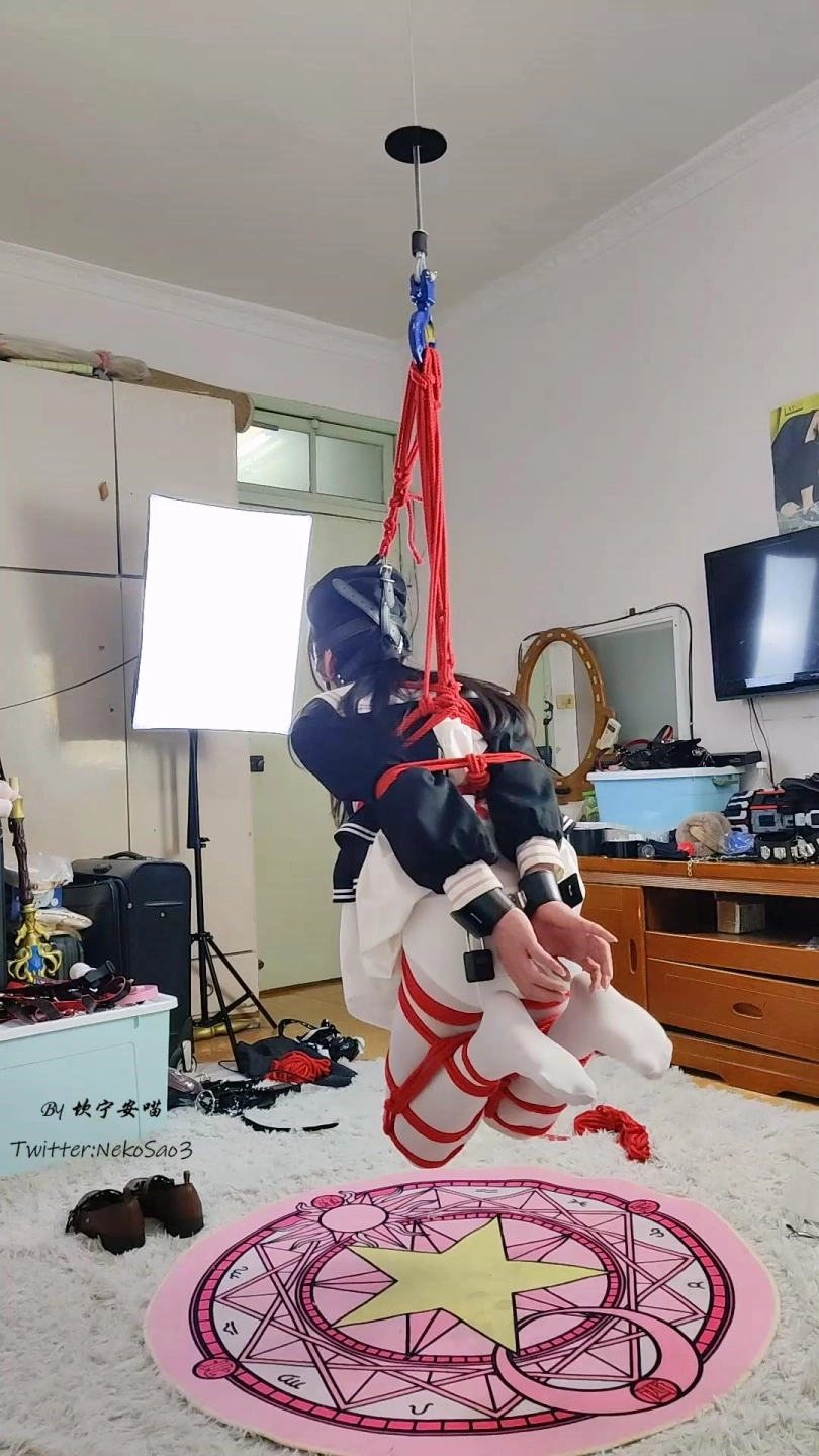 【坎喵】绝望的自缚-白丝lolita后手直臂折腿悬吊