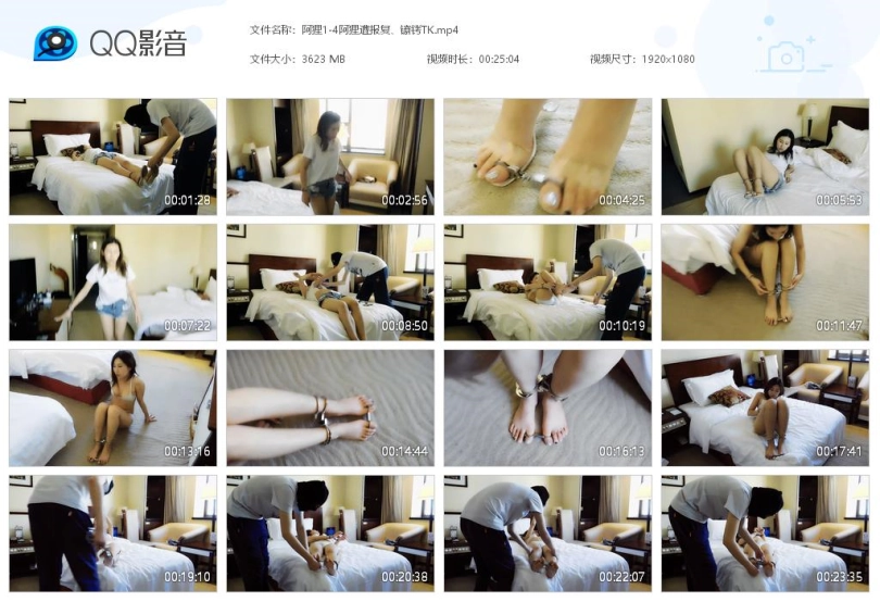 妹子回到宿舍,觉得很累就躺下睡了,却忘了关门。关系不好的男同事经过,发现没锁门,正好就上次的事好好教训她一下,然后穿着凉鞋,锁上链子脚趾铐、脚铐,然后离开。妹子醒了,然后发现脚被锁住了,很着急,各种喊叫,找钥匙,下地走。男同事再次出现,妹子受到惊吓,求饶,却不听。解下镣铐,脱下凉鞋,脱下衣服只剩内衣,给妹子锁上板铐、脚铐、脚趾铐,然后离开。妹子发现脚被锁的更紧了,十分着急,各种喊叫,下地走,下地爬,求饶。这时男同事又回来了,解开板铐锁在手上,锁上拇指铐,拿出三筒把脚腕脚趾连起来,挠脚心。