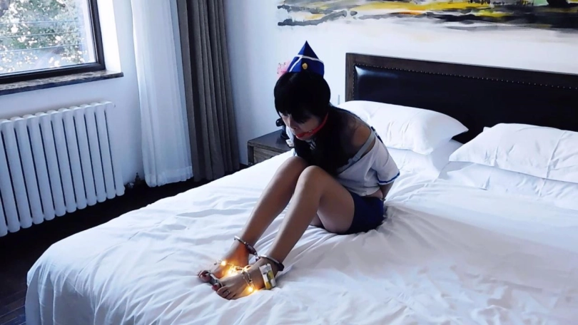 【趾间艺束】彩云应聘足模 遭遇变态 镣铐调戏 TK 手铐脚铐脚趾铐 空姐服帆布鞋棉袜 口球