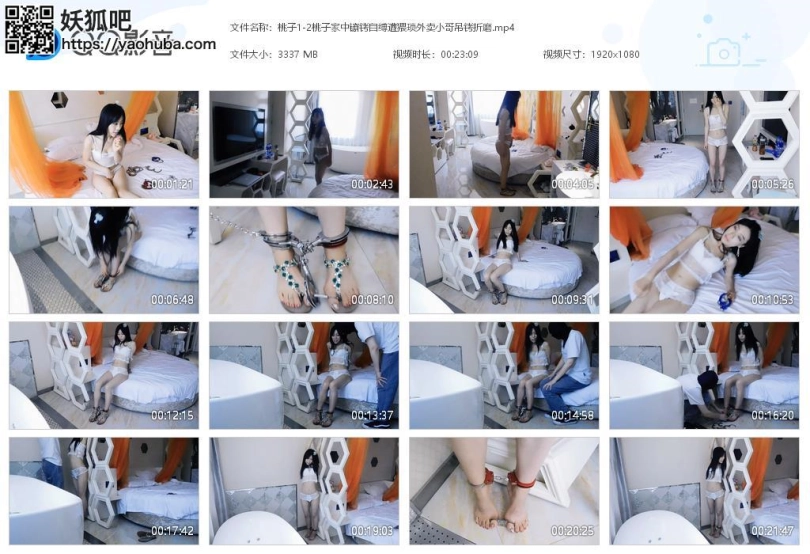 关键词:桃子 家中 镣铐 自缚 遭猥琐外卖小哥 吊铐折磨 手铐 脚铐 脚趾铐 蕾丝内衣 凉鞋