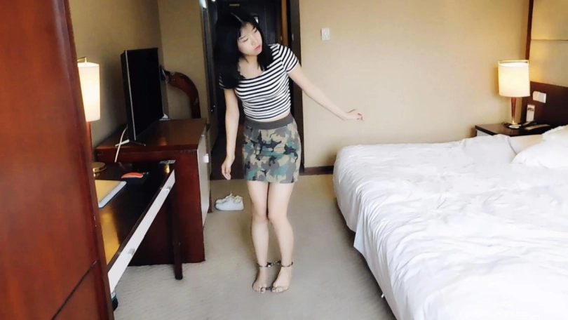妹子刚回来,看到了桌上的字条,有一个镣铐寻找游戏,找到哪些就把他们锁在身上。妹子觉得很好玩,决定参与。妹子找镣铐,先找到一把链铐,锁在脚腕上。然后找到一个链子脚趾铐,脱下鞋袜,锁在脚趾上。妹子慢慢行走,找到一个脚趾铐,锁在了脚上。妹子最后找到一个三通、手铐、长脚镣,决定玩个刺激的,在地板上驷马镣铐。袜子堵嘴,鞋放在头边上。趴在地板上,长脚镣拴住一只脚,手铐锁住手,三通锁上脚和连接手。妹子很享受整个过程,很开心。妹子觉得有点难受了,却怎么挣扎也弄不开,着急了,要哭了。