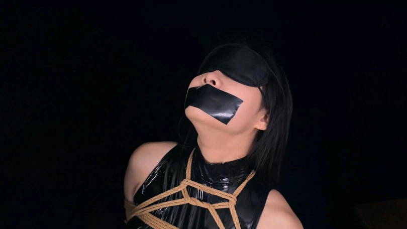 【象人】撕胶带!沉沉-漆皮勒B紧身衣,手脚都被牢牢绑住,被迫放置口球胶带,震动!