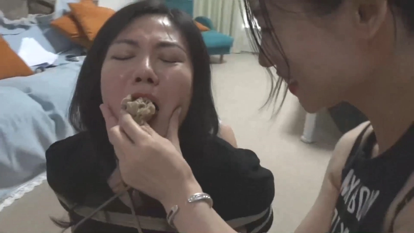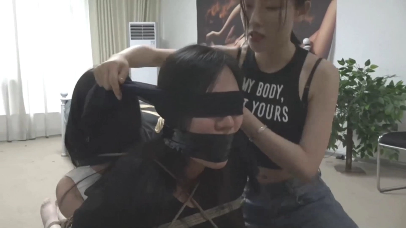 女人贩在床边黑丝脚挑逗羞辱母女两人,再把两人带到客厅连缚加堵嘴蒙眼,等着同伙上门取货,没想到同伙把女人贩一起绑了丢在母女身边准备一起贩卖,三女的呜呜声响彻全屋..