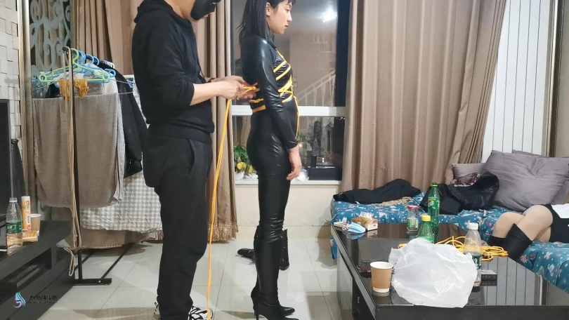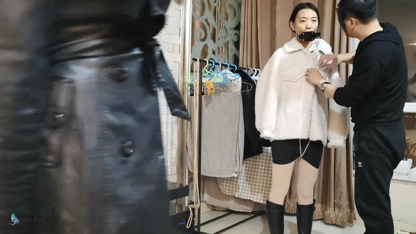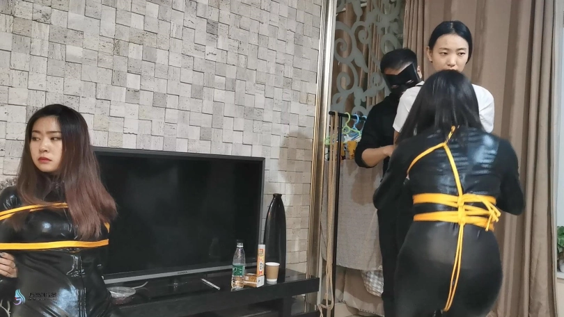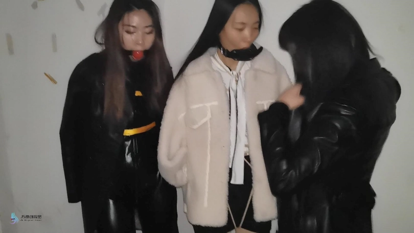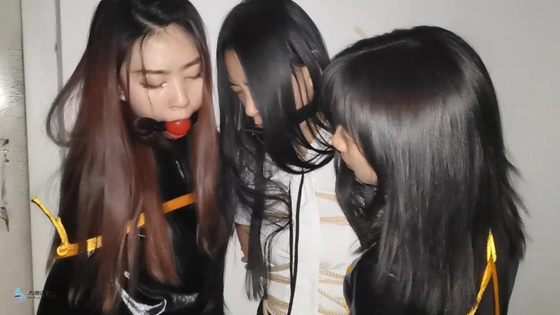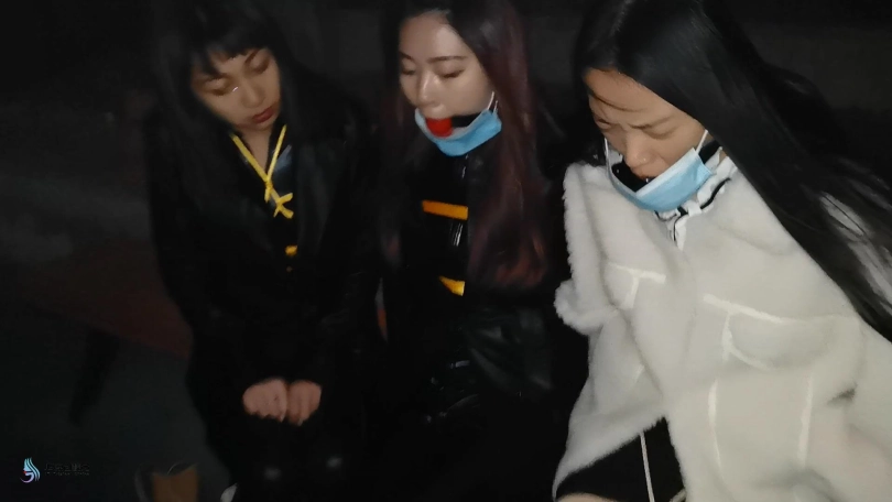 三位美女在出发前都被绳子捆绑着。瑾萱嘴里塞着口球,媛媛嘴里塞着Y具口塞,在给她们戴上口罩,披上外套。出发!坐电梯来到楼下,沿着道路在小区走了一段,来到公园的。坐在凳子上,解开她们的口罩和衣服,露出里面的绳子。由于是夜晚打着灯光,我们这里显得格外醒目。过往的路人都会往我这里观望。太尴尬了。关灯,起身,换个地方。坐电梯来到楼顶层的楼梯间,这里没有人打扰。若灵露出了本性,开始不断的抚摸着瑾萱和媛媛的胸部及下面的敏感地方。她拿出了一个跳D,刺激着她们两人。由于她们两人的嘴巴还是被堵着,只能发出轻微的呻吟声。