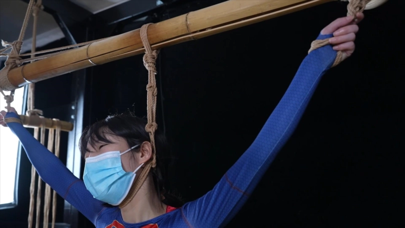 发现她的力量完全失去以后,开始放她下来,进行了各种强制拉伸