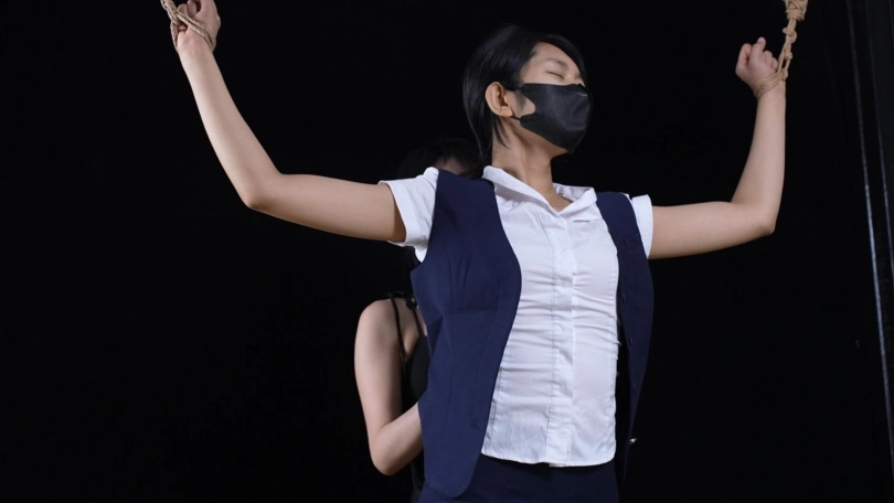 【象人】女女摸摸 猫猫&嗷嗷-空姐制服,咖色丝袜猫猫,大字站立捆绑,被嗷嗷各种咸猪手摸摸。