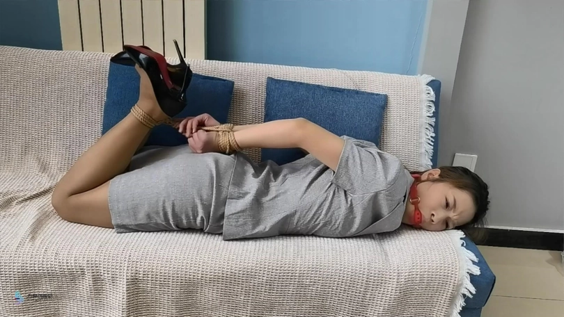 场景4:宫怡被绑(驷马) 在桌子上。她被一个红色的球堵住了嘴。她醒来时呻吟着,有点挣扎。青柠走过去说:“终于醒了?我会让你后悔当初抢了我。”。宫怡呻吟着,看起来很害怕,试图说“不,请……帮帮我!!”并乞求。青柠慢慢脱下高跟鞋,穿着长筒袜挠着脚。宫怡试图说:“住手!!不!!求你了!”但她只能说:“嗯!”挠了一会儿,青柠脱下了宫怡的袜子说:“这些偷窃一定让你的脚出汗了。你喜欢自己脚的味道吗?”她把袜子捆起来,强迫巩义闻自己的袜子。她还把巩义的鞋子放在鼻子上,强迫她闻一闻。巩义呻吟着。