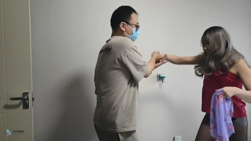 接着她冷静了下来,经过一段理智的自救,挣脱了四肢的绳索,然后把围丝巾从嘴里摘了出来,喘着气,歇了一会儿,然后她感到有些冷,双手抱住自己的香肩,环顾四周,嘴里嘟囔着“我这是在哪儿啊?”。然后她努力克服由于药物后劲儿带来的虚弱,站了起来,一开始没站稳,差点儿跌倒,手里拖着围丝巾,踉跄地走向被锁死的门。当她快走到门前时,门突然开了,神秘人走了进来,一阵奸笑后,步步紧逼着说道:“美女,感谢你贡献了一场精彩的直播。您的车子真不错,潜伏在您的后座真是享受呢!只可惜没有电动车安全,不然您就不会在这儿啦!哈哈哈。。。。。”女金领惊慌中夹杂愤怒地喊道:“你想干什么!你这是违法!放我走,快放我走!”说着欲夺路从密室门逃脱,被神秘人一把拦截,女金领试图用围巾勒神秘人,但在一番短时间搏斗后,被神秘人迎面一把扛起来,女金领丝腿在不安分地交替摆动挣扎,这时神秘人掏出迷晕针,往她裹着连裤丝袜的美臀上扎了一针,女金领叫声逐渐减弱,消停了下来,又睡了过去,神秘人把她又放到了床上躺好,又对着摄像头做了一个yeah的手势。