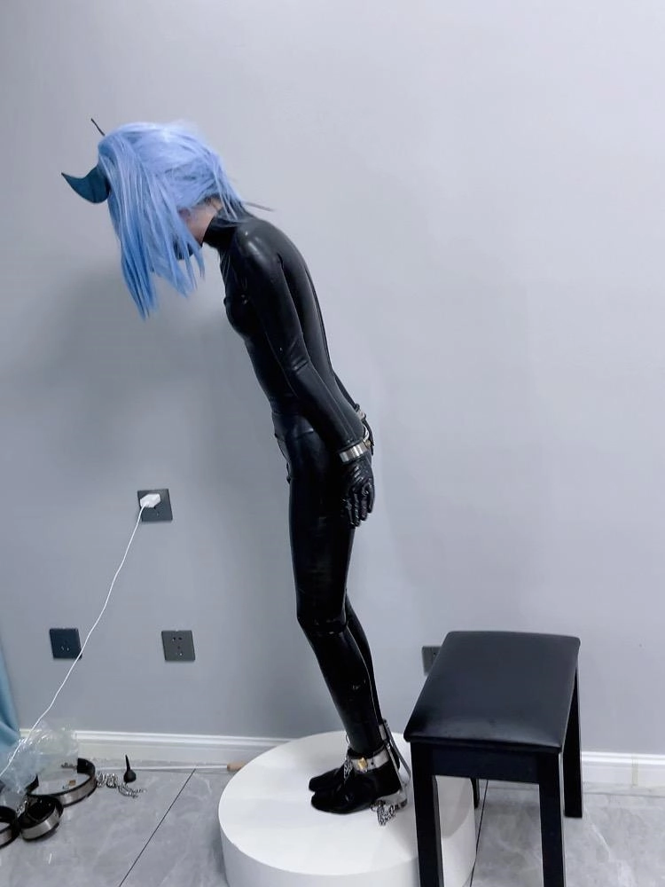 可怜的魔法少女就这样穿上羞耻的胶衣,双手被反铐在身后,艰难的维持着平衡。最要命的是脚底的尖刺镣铐,只要稍微维持不了平衡冰冷的尖刺就会狠狠刺痛脚底。这可是真正的刑具,一刺下去不受伤是不可能的。少女只能羞耻的站在收藏用的手办台上,被冰冷的刑具强制接受踮脚的惩罚,疯狂的压榨着少女的体力.....