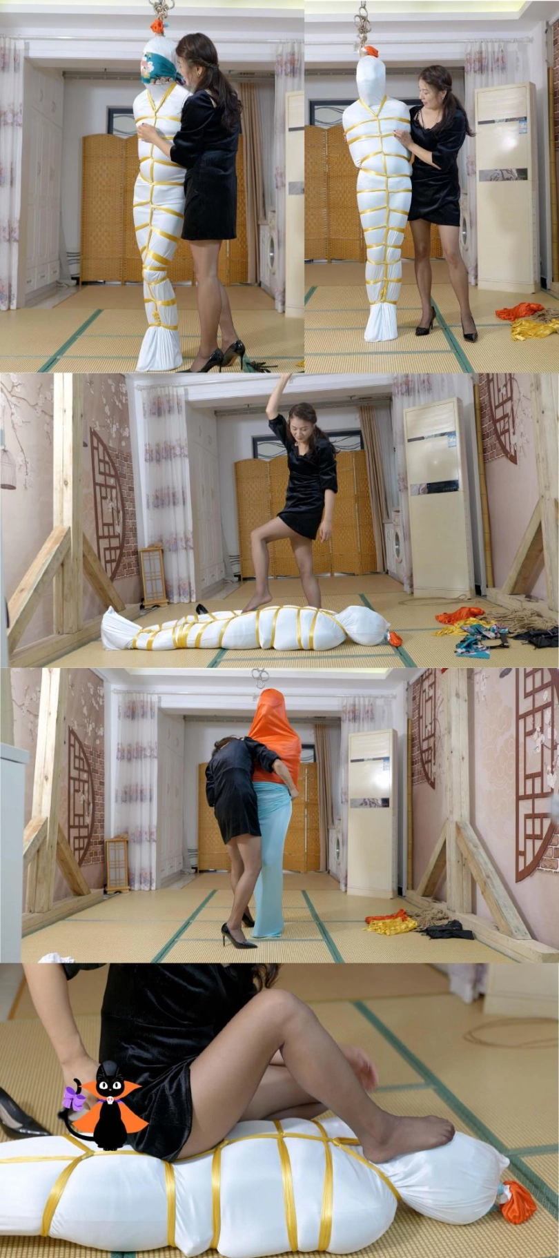 【王丽】里面丝绳捆绑,外面三层丝绸袋全包,再用丝绸袋绑全身,蹂躏男M